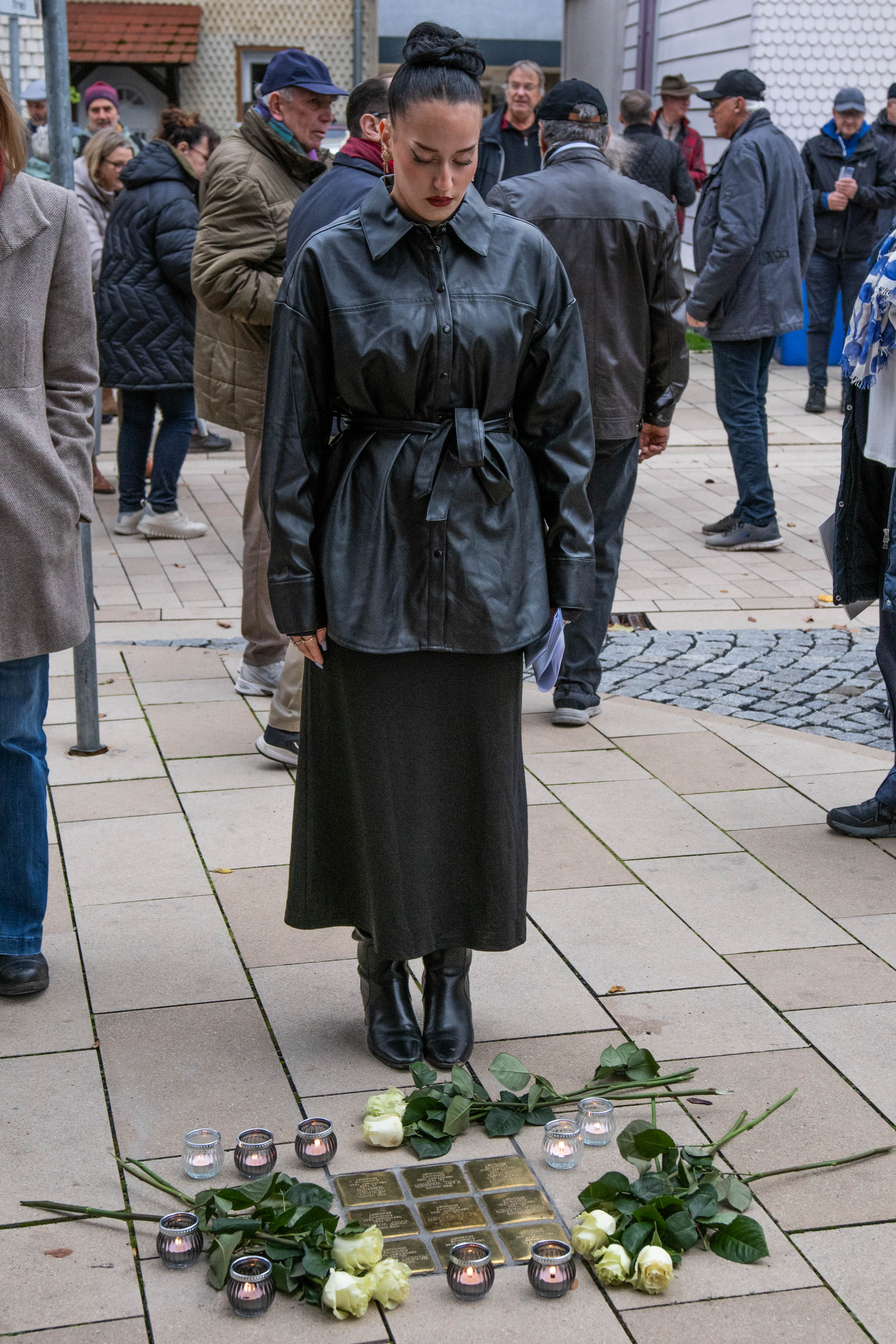 Oben: Leute bei der Zeremonie zur Verlegung der Stolpersteine