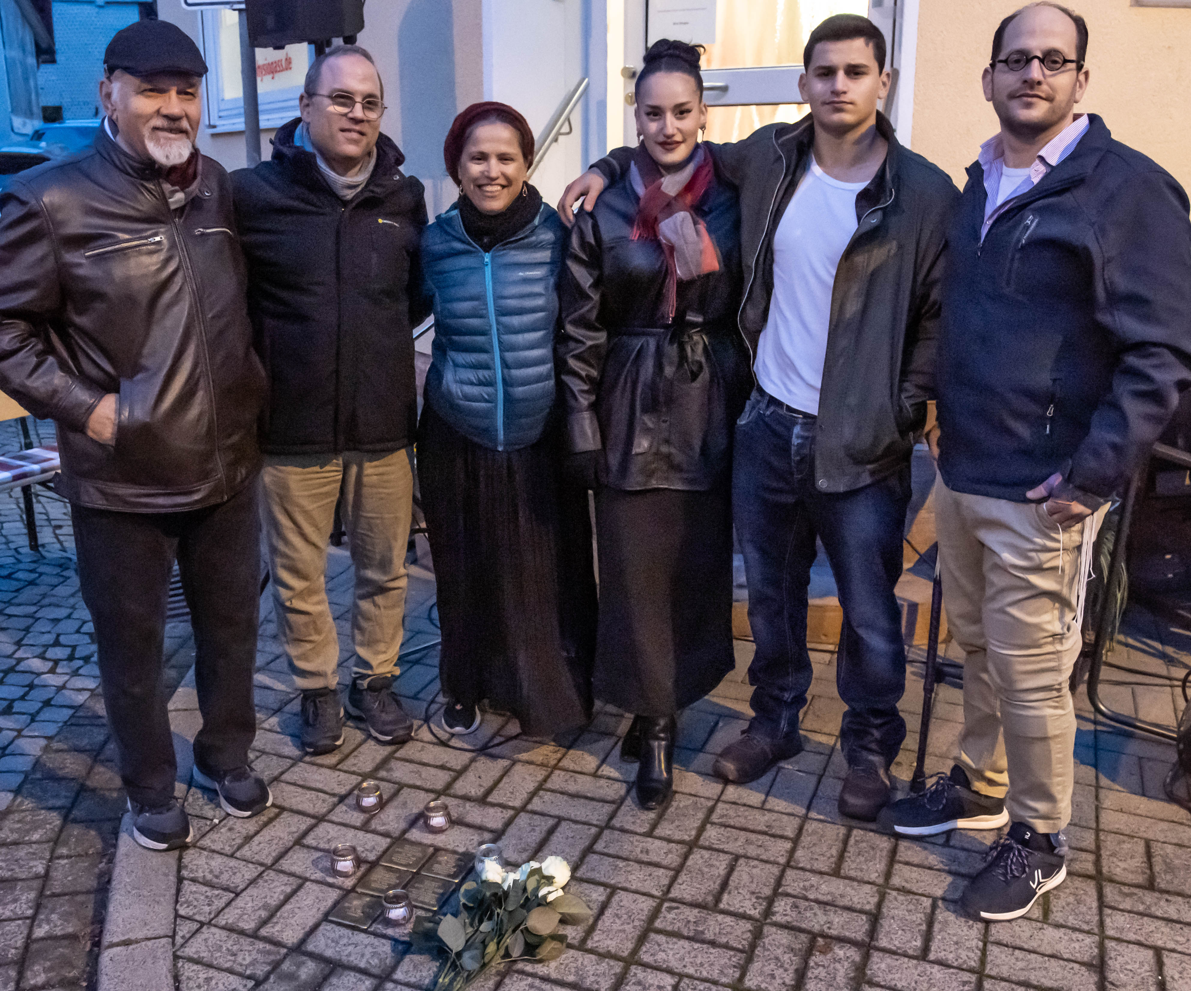 Unten: Die sechs israelischen Besucher, Nachfahren der Familie Oppenheimer, kamen zu den Verlegungen der Stolpersteine nach Schlüchtern